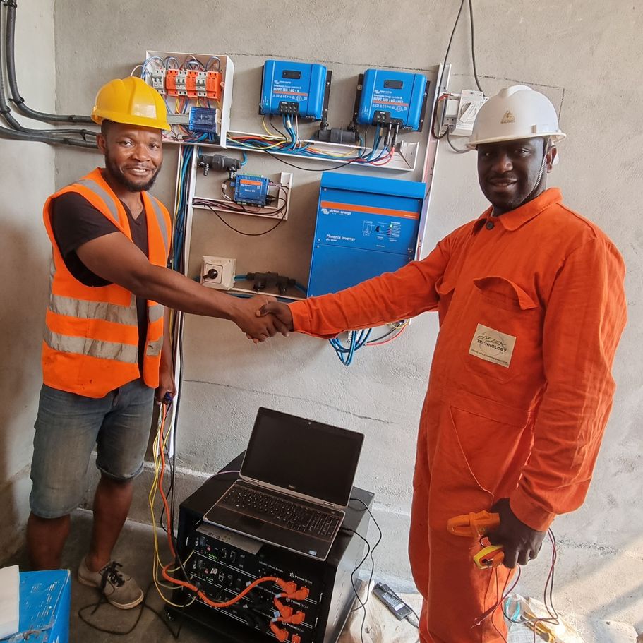 Das Projekt war eine echte Partnerschaft: Ein Team von EKOSIX UG schloss sich dem Team von EKOVER SARL vor Ort an. Diese Zusammenarbeit sicherte nicht nur die Qualität der Installation, sondern ermöglichte es auch, vier junge Techniker in den neuesten Solartechniken auszubilden.